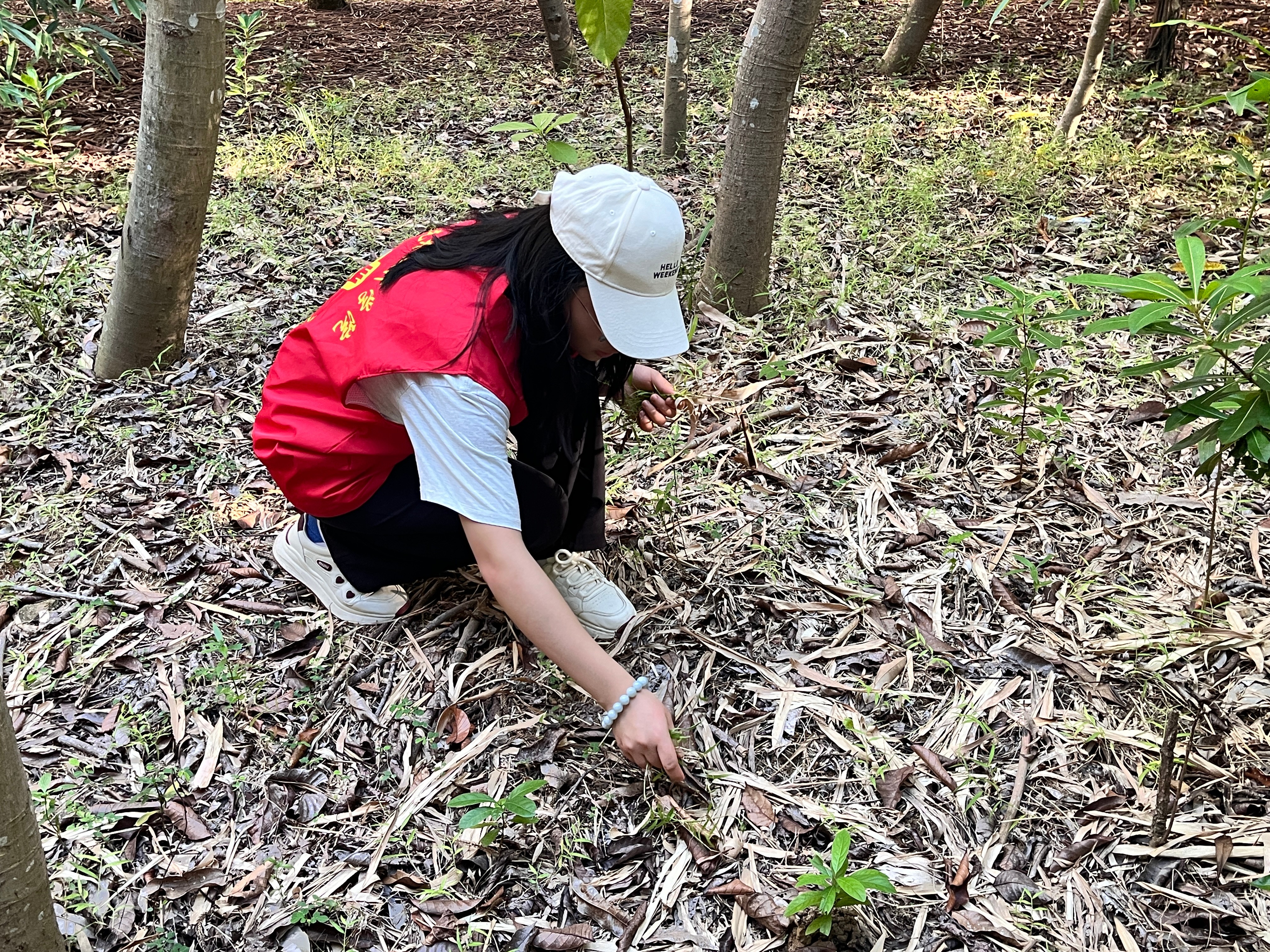 活动伊始,志愿者们按照预先分好的小组分头行动。其中一组的志愿者重点开展垃圾清理工作。大家携带垃圾夹、垃圾袋等工具,对校园道路两侧、绿化带间隙、操场周边等区域进行全面清洁,将散落的纸屑、塑料杂物、枯枝落叶等一一夹起并装入垃圾袋,不放过任何一处卫生死角。另一组志愿者则开展杂草清除作业。志愿者们俯下身来,对树边长势杂乱的杂草进行拔除。此举不仅有效提升了校园绿化景观的整洁度,而且进一步压缩了蚊虫栖息空间,为营造清爽的校园环境奠定基础。