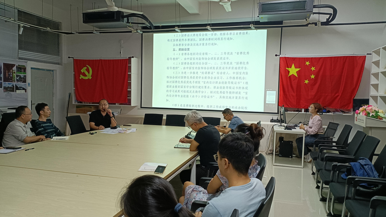 会议上,建环学院副院长张春教师刘洋梓分别向会人员介绍了三项重要赛事。首先是“2023学院杯中国室内与环境设计大赛”,其次是“全国大学生第12届海洋文化创意设计大赛”,最后是“2023年全国院校室内设计技能大赛”。各位领导积极鼓励老师带动学生们参与这些赛事,为学院的设计类教育注入新的活力。