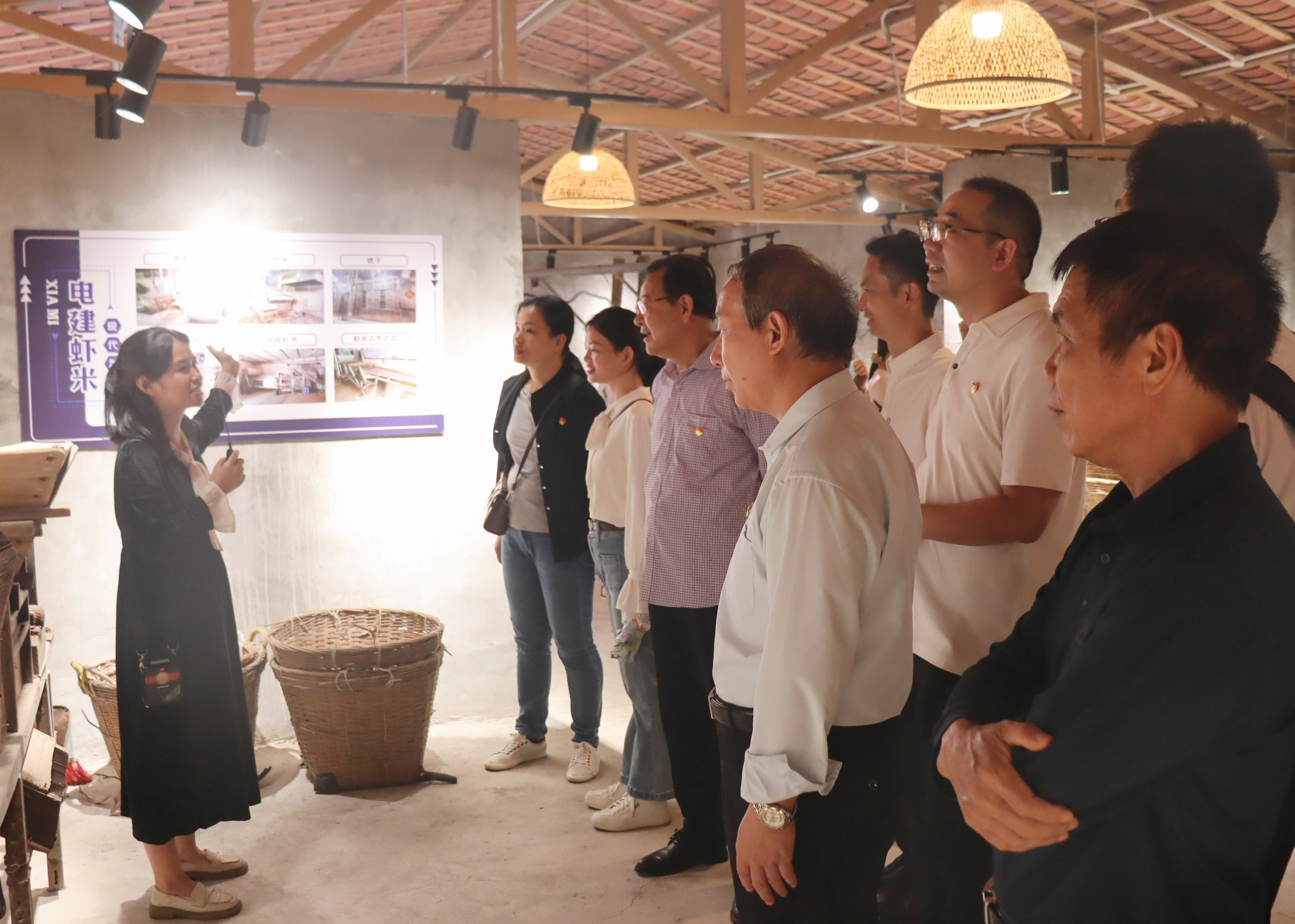 接着,大家来到渔耕文化馆,参观了各式各样的渔耕文化展品,包括渔船模型、捕鱼工具、传统渔网等老物件,深入了解了北海渔民的生活生产方式,同时讲解员也为大家详细讲解了电建村的发展变迁史,这使得大家深刻体会到了保护和传承渔耕文化的重要性。