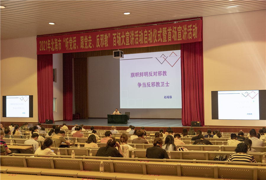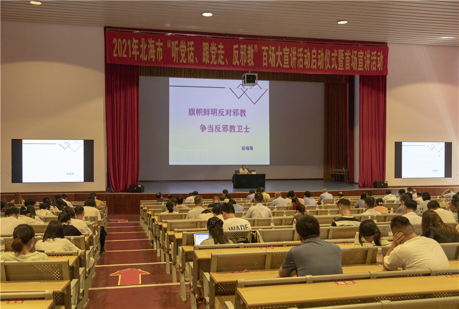 6月21日上午,北海市“听党话、跟党走、反邪教”百场大宣讲活动启动仪式暨首场活动在我校西校区大礼堂召开。