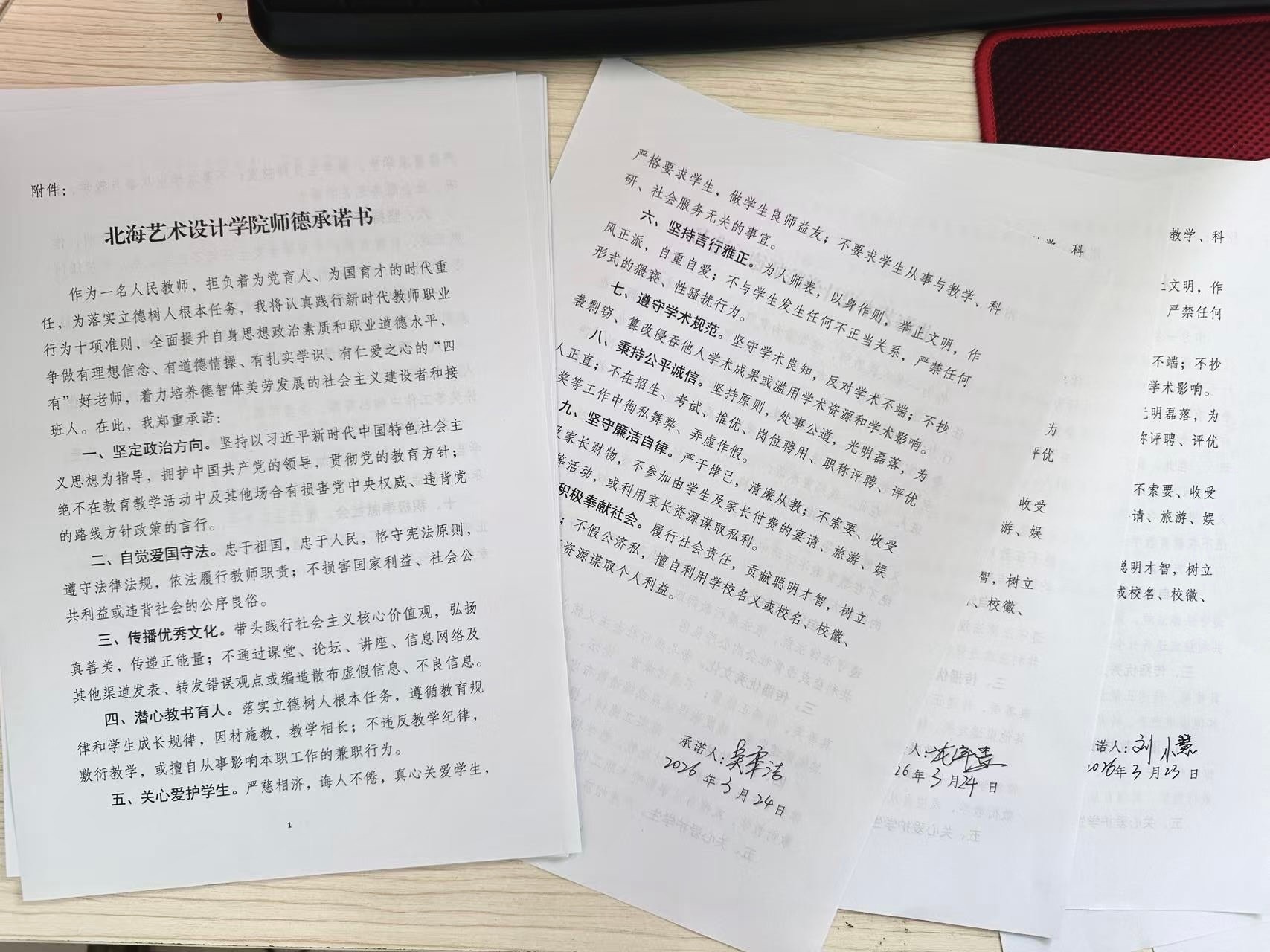 此外,会议还重点开展了师德师风专题学习。曹永攀书记强调,师德是教师的立身之本。全体教职工要自觉践行教育家精神,坚守“学高为师,身正为范”的职业准则,将立德树人放在首位,以德立身、以德立学、以德施教。他要求大家严守职业底线,自觉抵制不良风气,争做“四有”好老师,当好学生健康成长的指导者和引路人。并在会后组织我院全体教职工签署了《师德承诺书》。