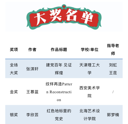 近日,WZD2021第二届纹藏国际纹样设计大赛获奖名单揭晓。我校设计学院视觉传达系2019级本科生李欣芸的作品《红色地标里的党史》荣获“银奖”,设计学院视觉传达系教师郭梦楠获评优秀指导老师。