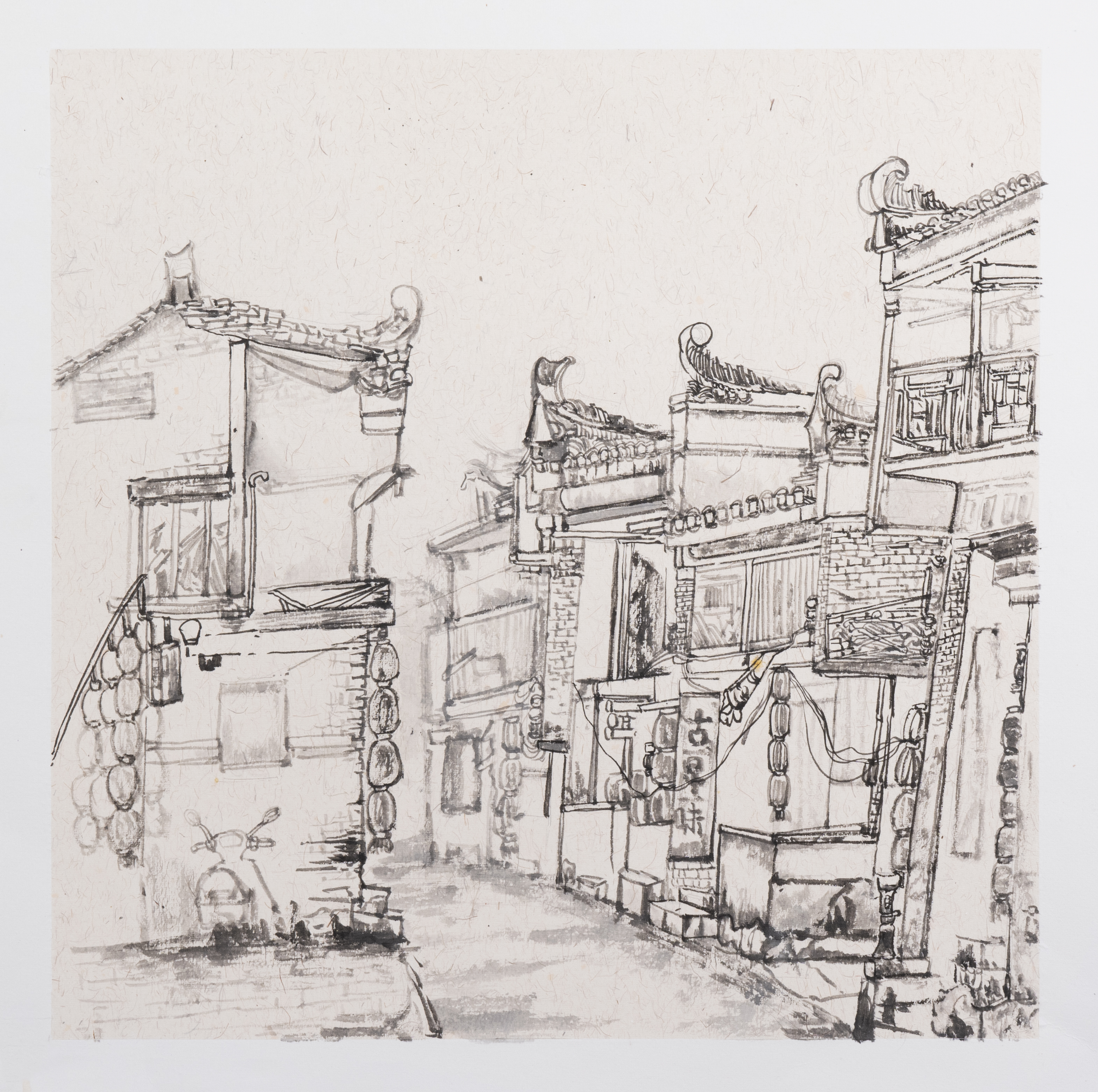 学生作品:美术学2413、14班,冯玉琴侗居巷影》,26cmX37cm