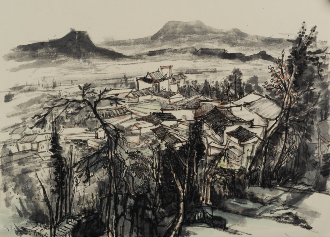 龙义敏教授作品《贺州古村印象之一》,40cmx70cm