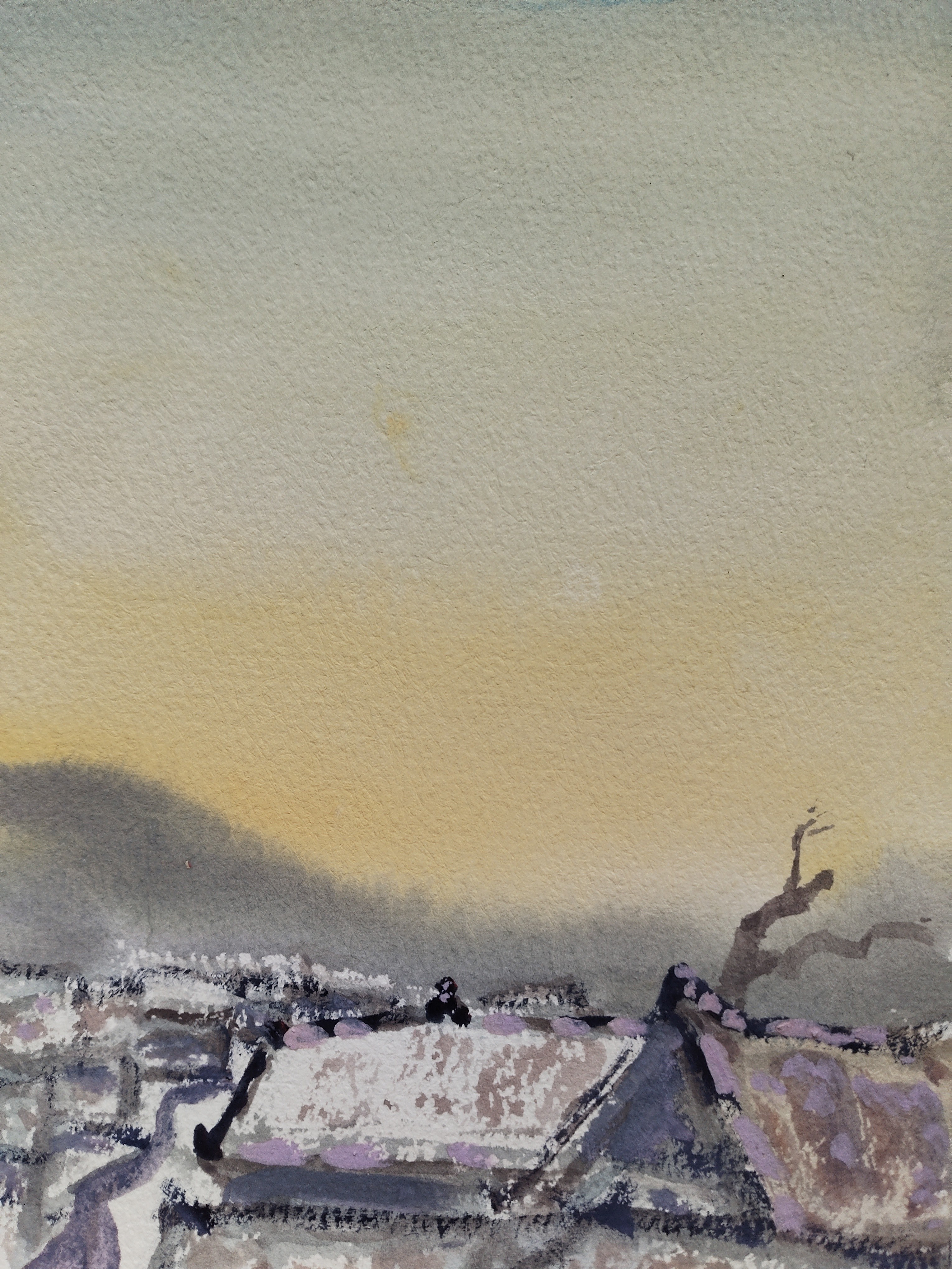 袁志伟老师作品《黛瓦听风》,50cmX82cm