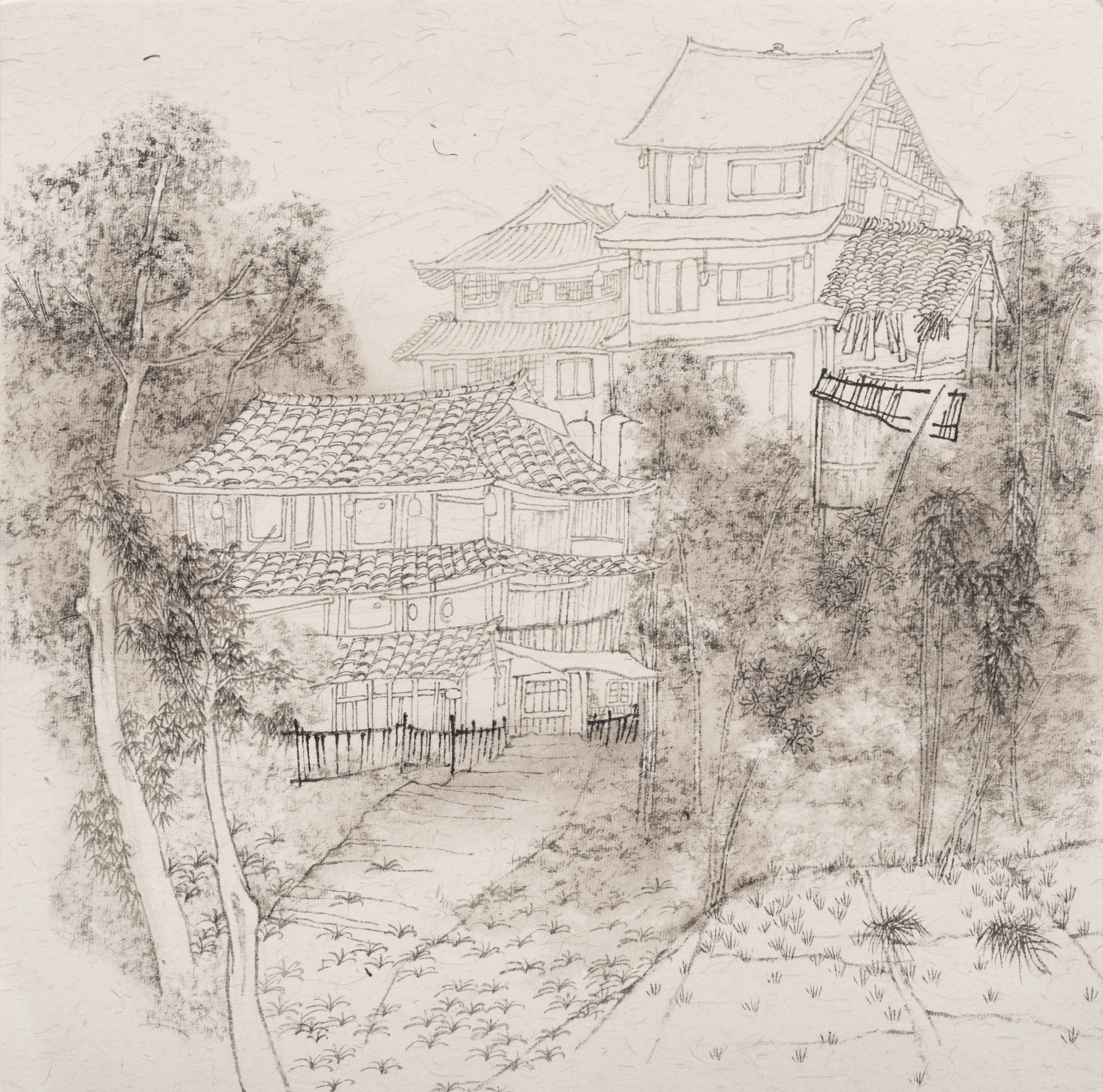 龙义敏教授作品《贺州古村印象之二》,40cmx70cm