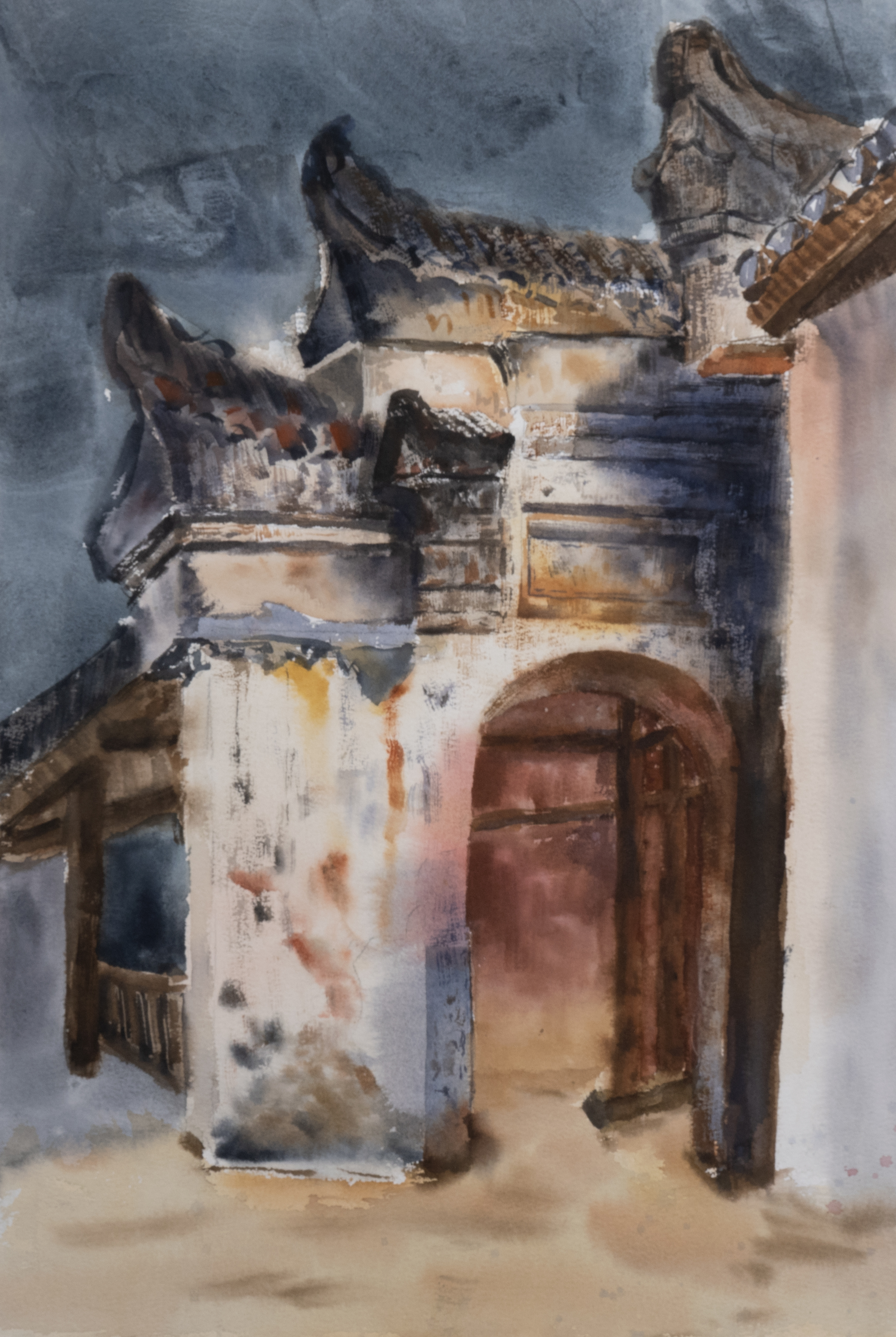 学生作品:美术学2308班,程泊乔灰墙拱下的留白》,38cmX42cm