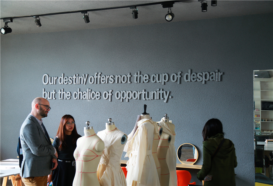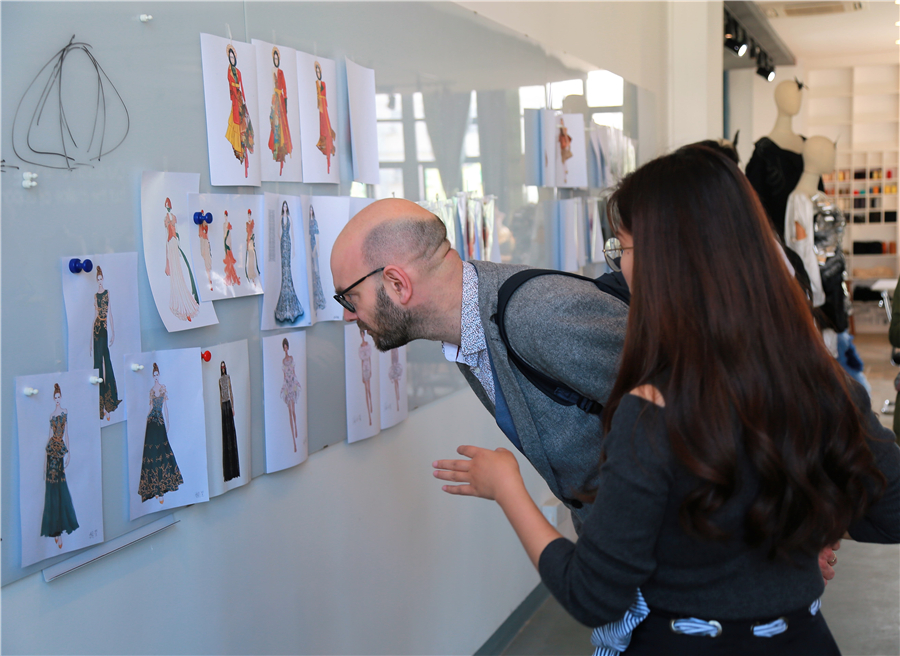 在我校副校长胡胜和服装学院副院长孙竹青的陪同下,来到西校区服装学院的工作室,Matt Hawthorn副院长认真听取了陈婷婷老师对于服装学院的发展历程、学科特色、人才培养和办学成就的相关介绍,并参观了服装学院师生的作品。