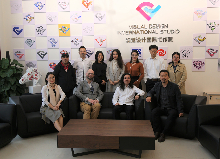 Matt Hawthorn教授与副校长胡胜、设计学院师生合影
