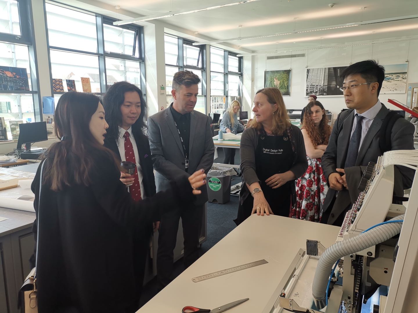 (代表团在Kay女士陪同下参观服装设计与纺织系的工作室,并和专业教师以及学生亲切交流)