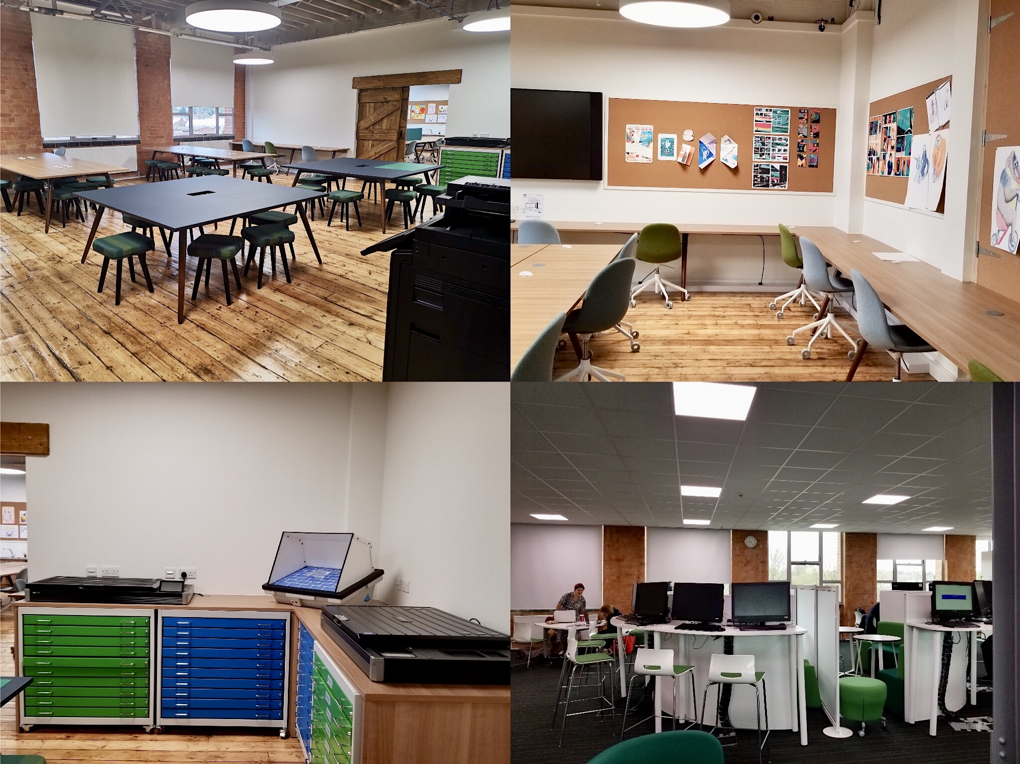 (代表团在环艺设计系主任 Mr. Barend陪同下,参观英国德比大学图书馆、环艺设计系实训室和教室)
