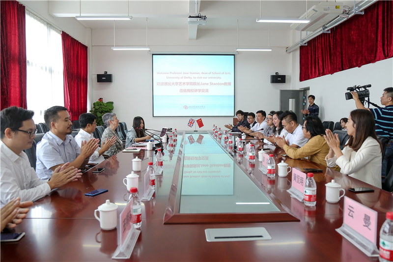 Jane Stanton教授对我校办学理念表示肯定,在跨学科、跨专业学习及注重学生实践等方面与德比大学有很多相似之处,并介绍了德比大学艺术学院优势学科、本科专业、校企合作及取得的成果等。之后,双方就专业设置、教学模式、教育理念、交流互访等方面进行探讨,在融洽的氛围下初步达成了一系列的共识,为继续深化合作奠定了坚实的基础。
