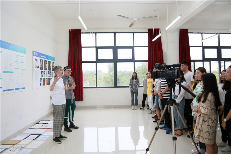 之后,副校长胡胜及Jane Stanton教授一行人参观了视觉传达工作室,Jane Stanton教授对我校师生作品及所取得的成果给予了极高的评价,并与各工作室师生亲切交谈,合照留影。