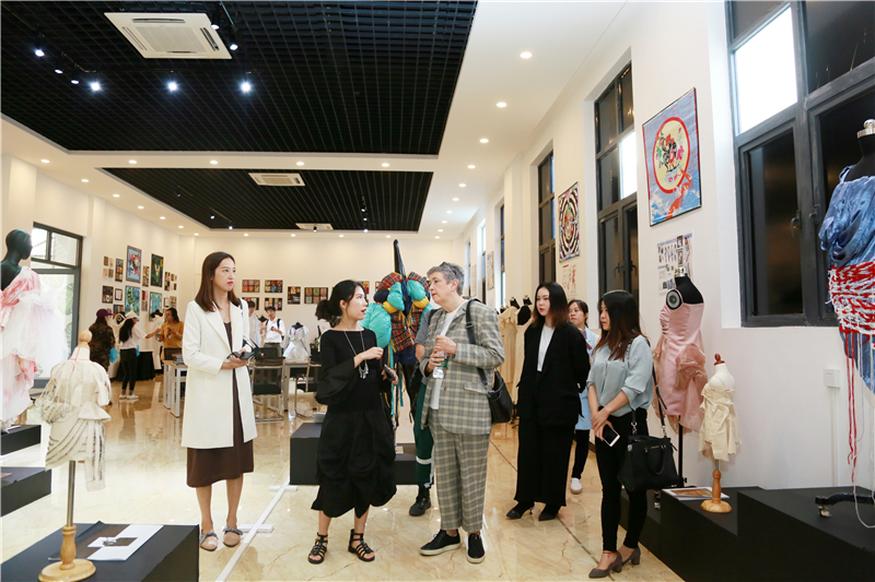 在参观我校服装学院工作室时,Jane Stanton教授认真听取了陈婷婷老师对于服装学院的相关介绍,并参观了服装学院师生的作品,当参观到服装学院实训室时,Jane Stanton教授对同学们设计创作的童装作品充满兴趣,赞不绝口。