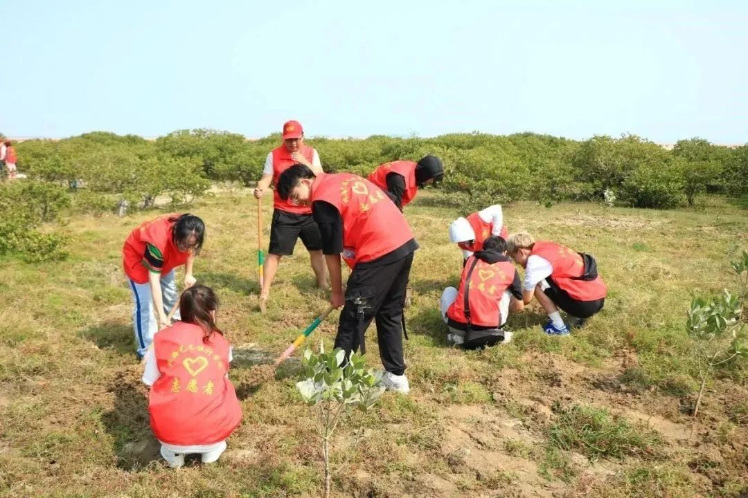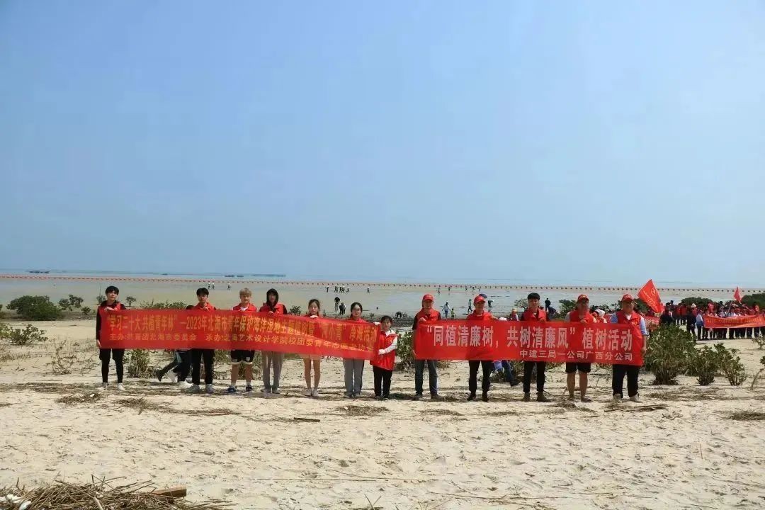 在第45个植树节到来之际,我校青年志愿者协会来到红树林参加了由共青团北海市委员会主办的“学习二十大,共植青年林”2023年北海市青年保护海洋湿地主题植树暨“河小青”净滩活动。