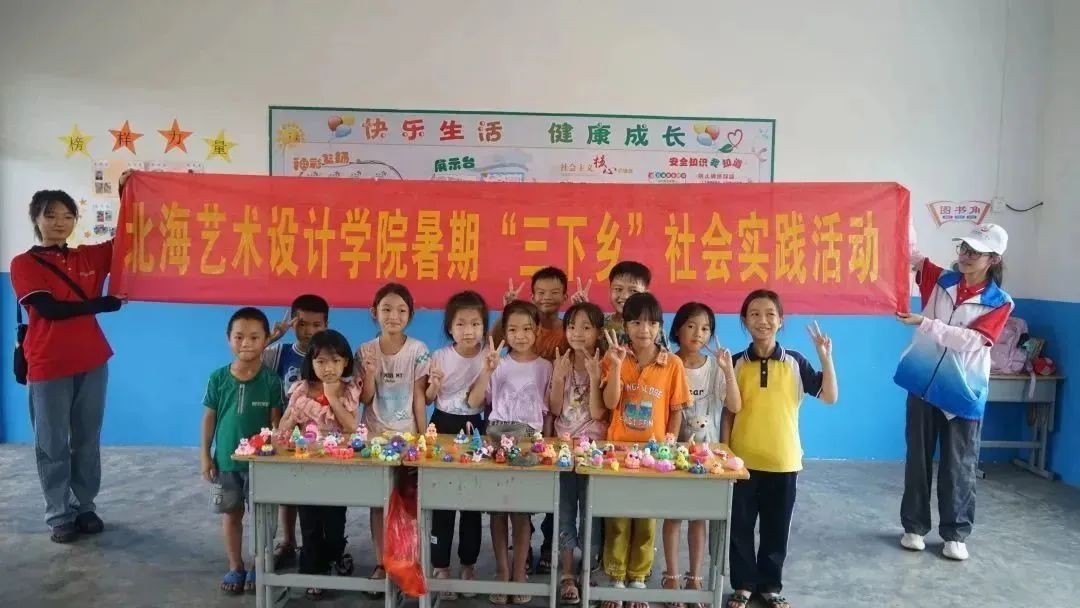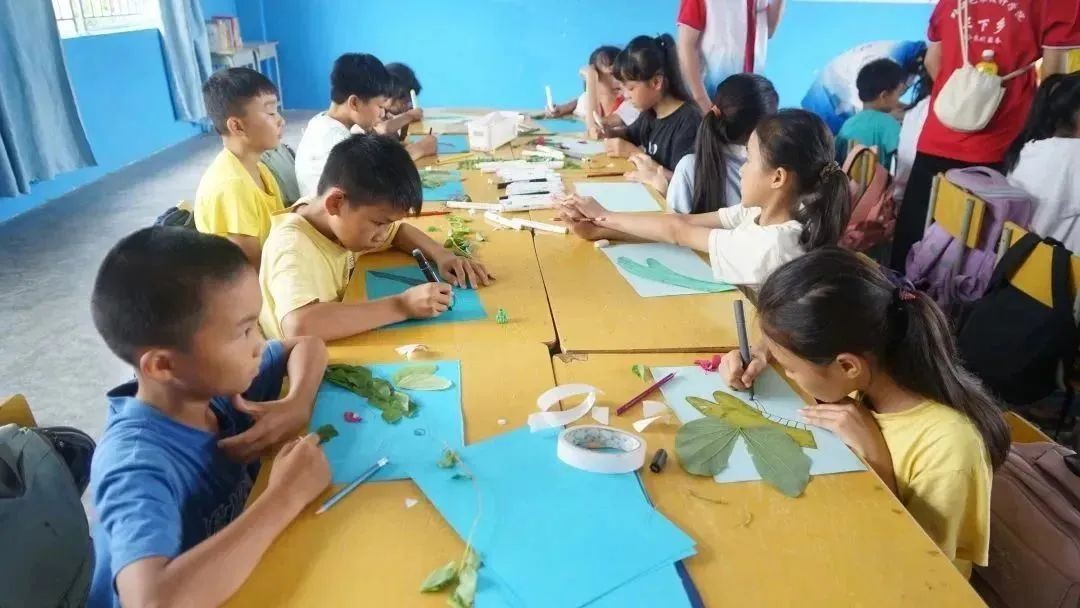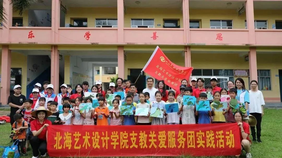 6月15日下午,北海艺术设计学院支教关爱服务团在北海市合浦县石湾镇小学开展手工、音乐、绘画、口才小课堂,乡村小学校园文化墙绘设计等活动。将自己所学专业知识技能教授给红锦村小学的同学们,让同学们学有所得,把艺术课程带进红锦村小学。