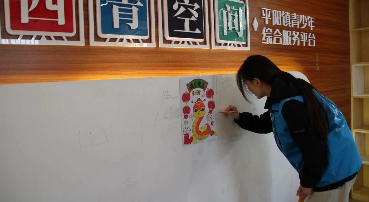 在平阳镇赤东村开展“灵蛇献瑞,童趣迎春”元旦主题绘画活动,志愿者们巧妙地将传统元素融入绘画教学,孩子们用画笔描绘出对新年的期待。他们的小手一笔一画地创造出寓意吉祥与好运的蛇形图案,每个人脸上都洋溢着幸福笑容。通过此次活动,孩子们不仅学会了用画笔来表达自己的想法和感受,还收获了志愿者们的关心与陪伴,同时加深了对中华优秀传统文化的认识
