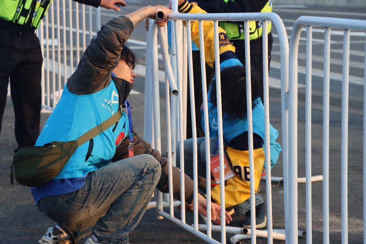 志愿者为运动员们加油助力