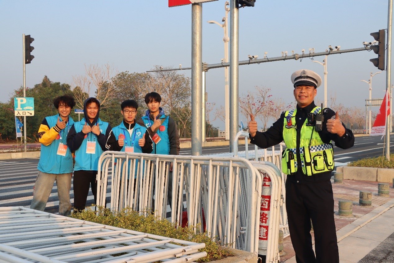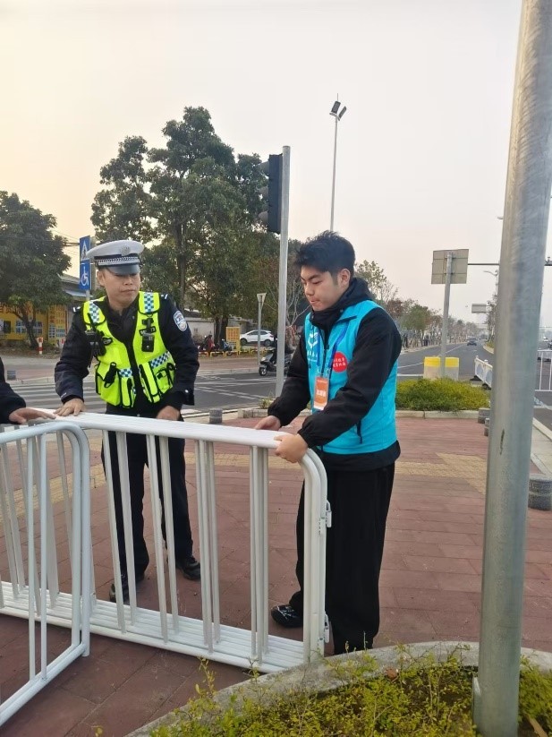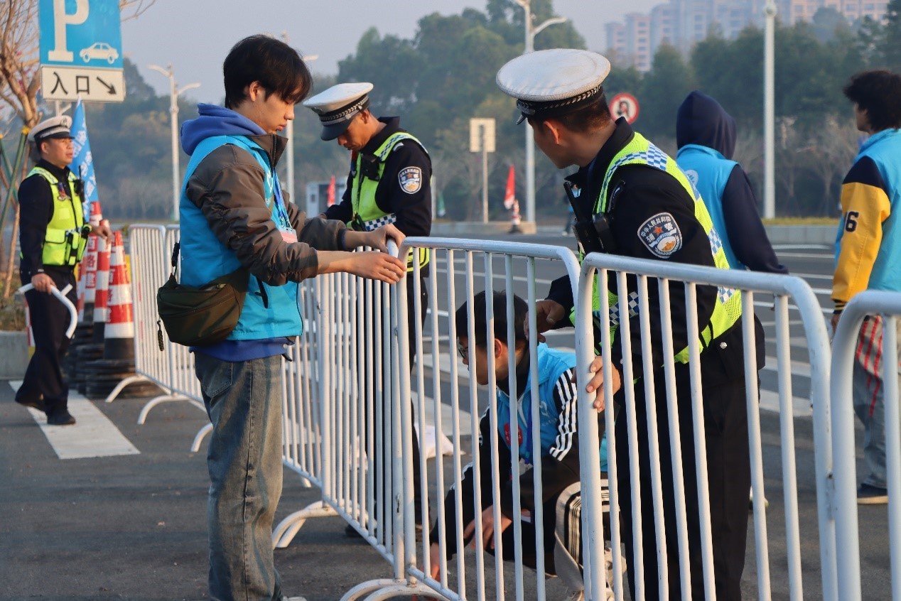 交通管制协助组的志愿者们协助交警封控赛场,指挥车辆进出,有效保障了赛事期间道路交通的良好秩序,确保活动安全进行。