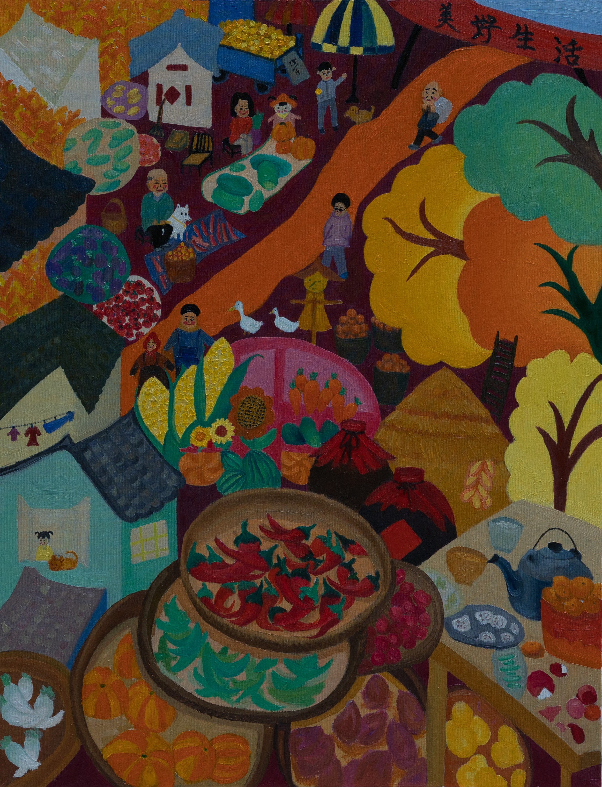 张馨萍《青果市集》115×160cm 2023年 纸本