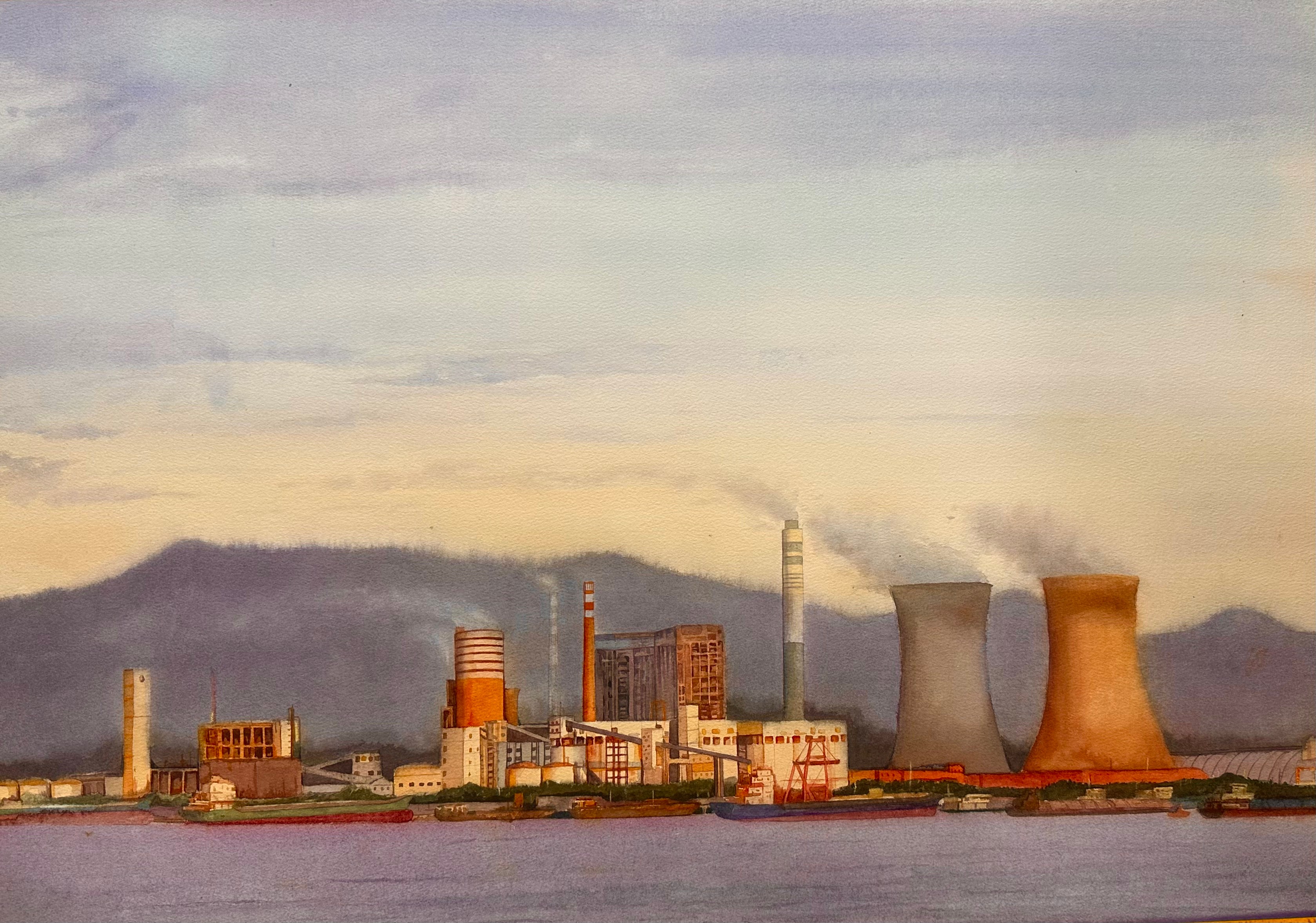 潘巧姝《核电站的英姿》65cm×71 cm 2023年 纸本水彩