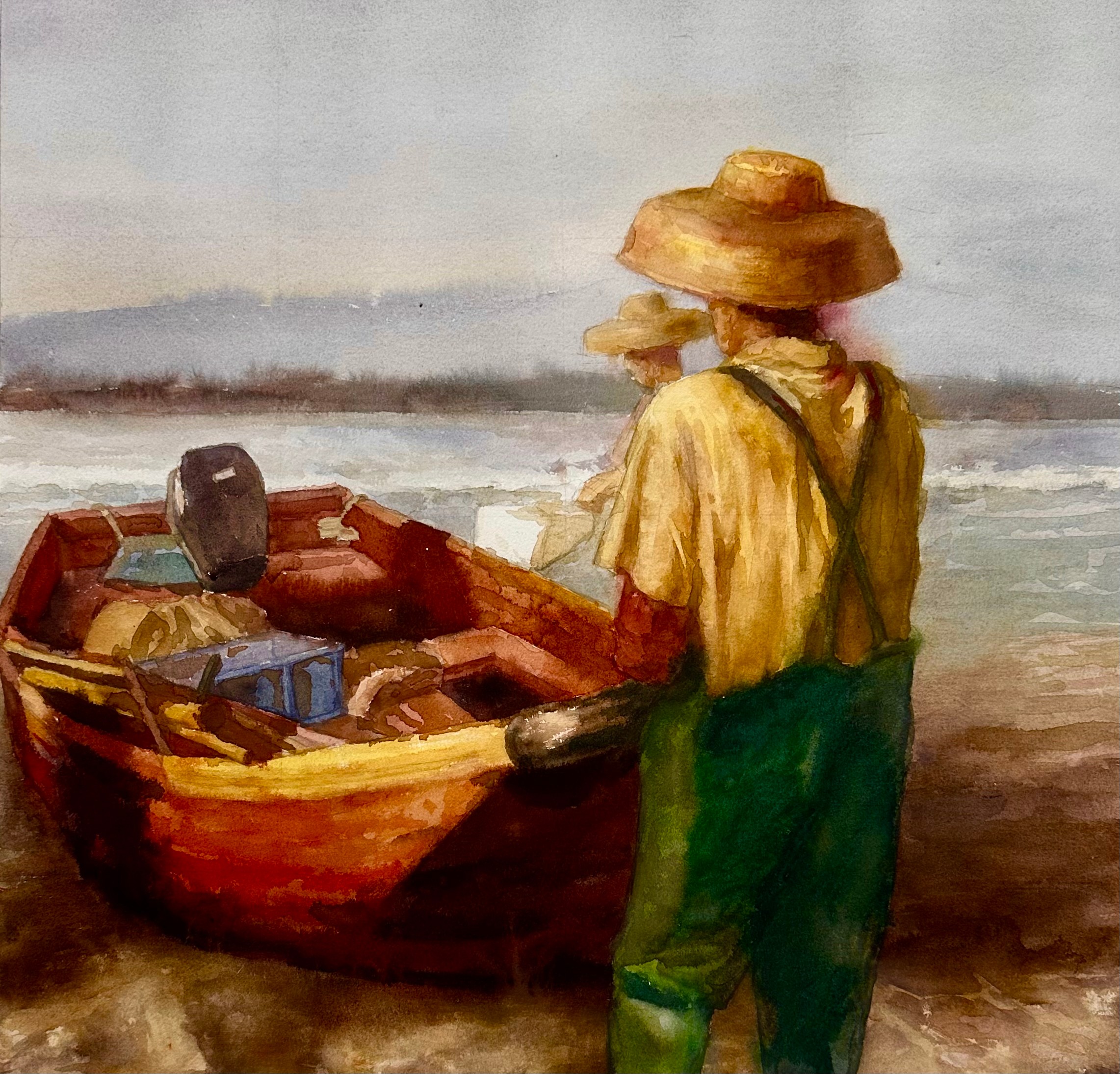 何思缘《渔民》(之三) 48cm×48cm 2023年 纸本水彩