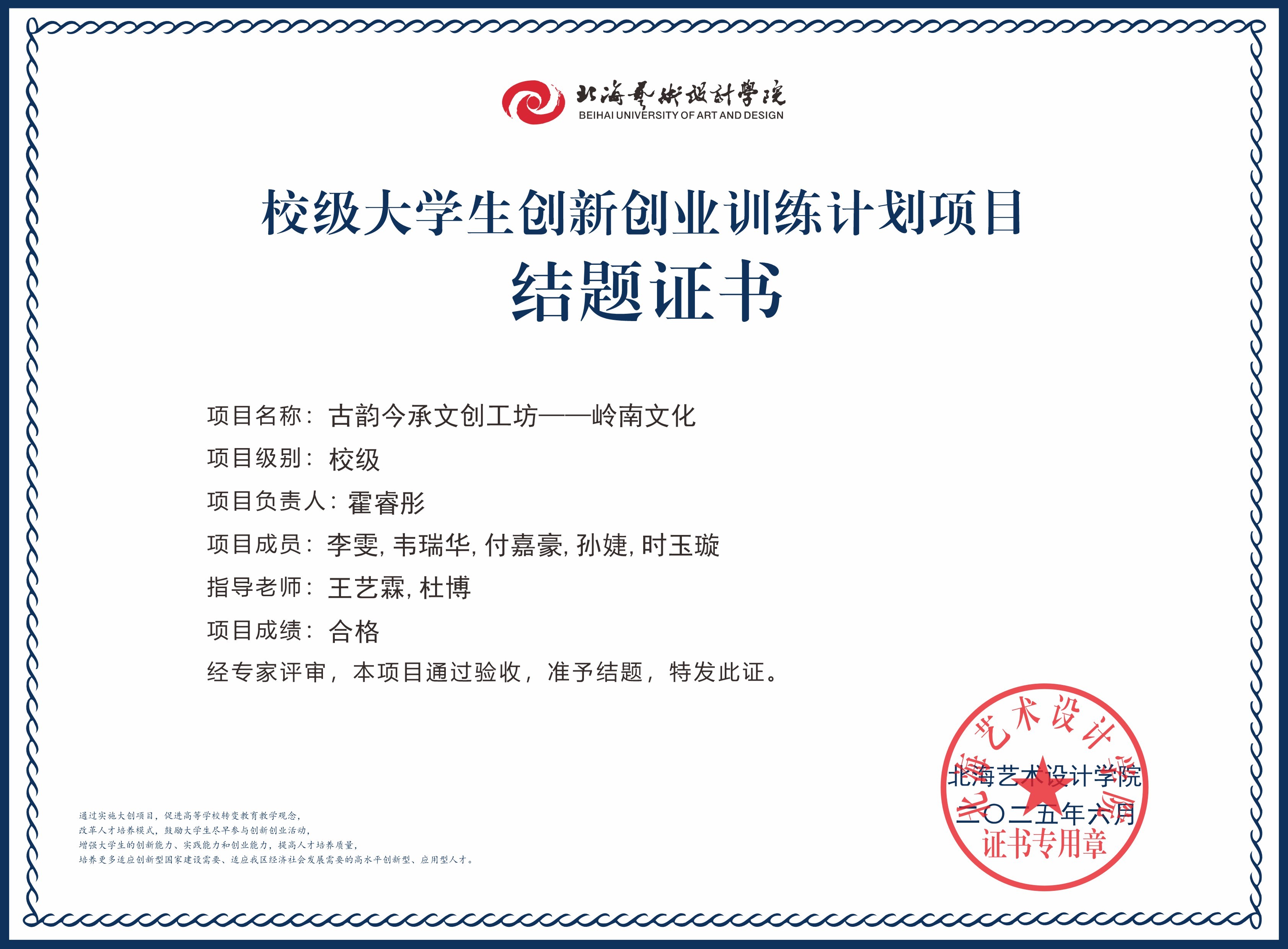 2025年大创项目结题证书(校级)