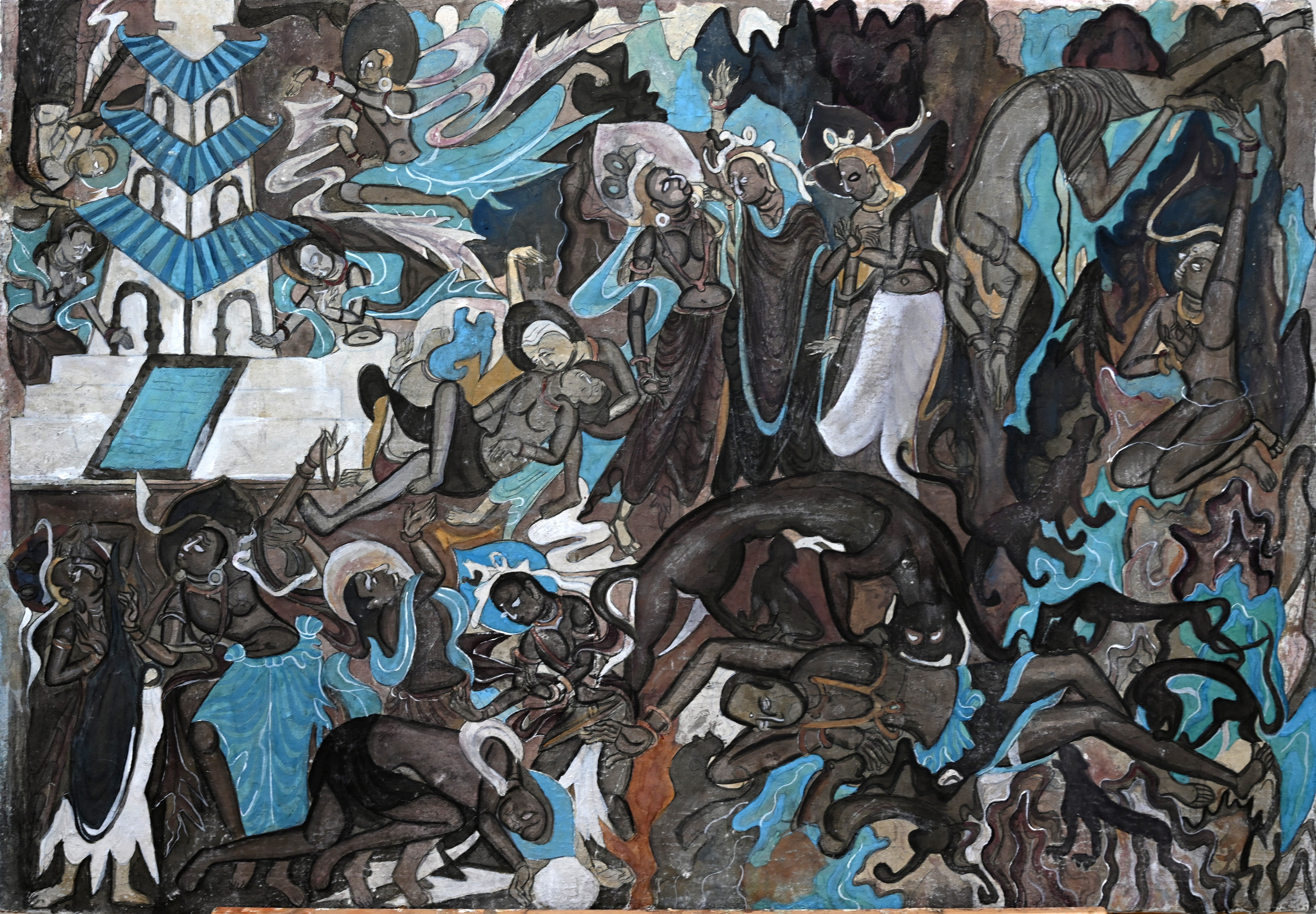 《中国传统壁画临摹》是面向美术学院学生的专业拓展课,以理论和实践相结合的方式,初步认识敦煌壁画的经典遗存。课程从莫高窟的历史背景、文化内涵和壁画故事文本的梳理,在理论上对敦煌壁画构建出一个立体的认识。要求学生绘制中严格按照传统壁画的绘制流程,体会古代画师对壁画工艺的尊重与严谨。建议学生按小组结合完成整铺壁画的临摹,感受壁画独特的图像叙事逻辑,也可个人选取局部进行现状临摹。临摹过程中体会矿物材料的特性、美感,并分析经过时间洗礼后的壁画色彩的承接关系等。鼓励来自不同专业的同学发挥自身艺术能动性,在实践中体会传统壁画与本专业绘画的异同,激发自身的创造性,为日后的创作提供更多的可能性。