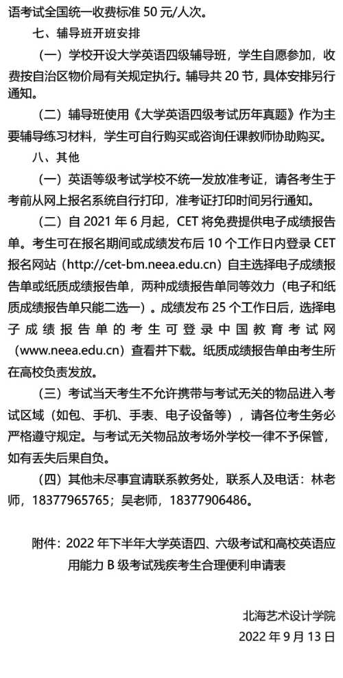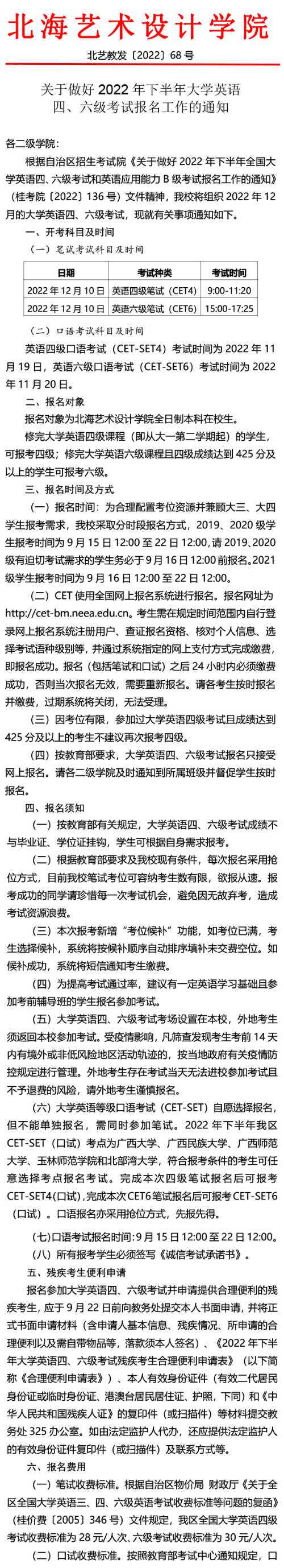 关于做好2022年下半年大学英语四、六级考试报名工作的通知