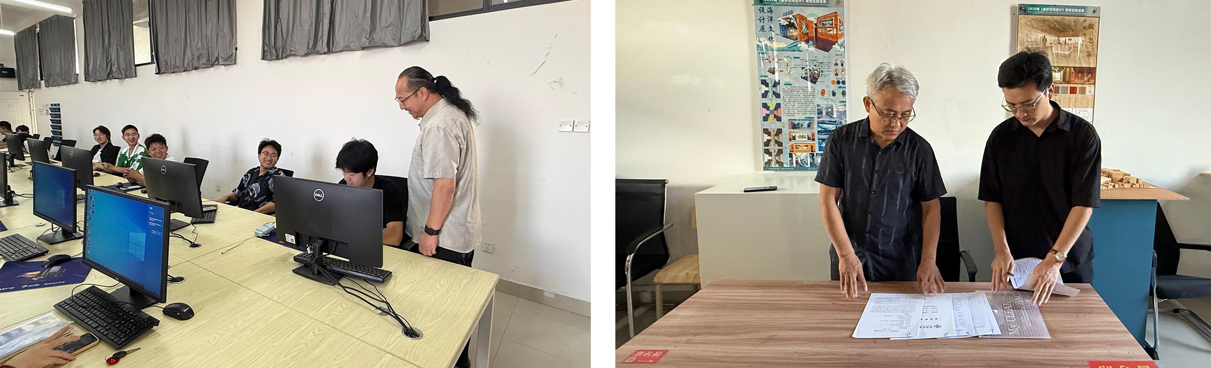 为保障新学期教学工作规范有序开展,9月1日7时50分,学院党总支书记庞定坤、院长张春东带队,联合班子成员及教研室主任组成专项巡查小组,对全院专业教室、设计实验室、工作室等教学场所开展巡查,重点围绕“教师教学状态”“学生学习状态”“设施运行状态”三大维度实施检查。​