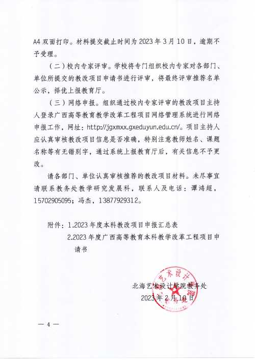 北艺教务〔2023〕 6号关于组织申报2023年度广西高等教育本科 教学改革工程项目的通知