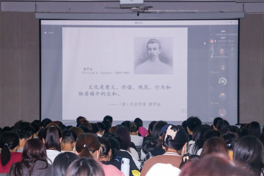 讲座过程中,张夫也教授以精神和形式要素为切入点,从两个层面讲述传统文化元素。中华传统文化是在人类历史发展进程中,中华民族在特殊的自然环境、经济模式、政治结构、意识形态等方面的作用下所形成的文化习惯和文化积淀,他表示传统文化内涵极其丰富,在潜移默化中引领着社会的进步和发展。