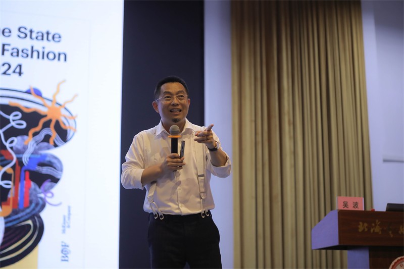 讲座伊始,吴波教授对《BOF》和麦肯锡共同发表的《时尚状况2023》年度报告进行分析,他从社会政治角度、市场高度本土化角度、经济危机影响、多品牌回归、创意与营销等多角度带领现场师生了解了时尚界所面临的挑战。他表示,时尚发展需要更重视未来展望,时尚领袖也应在寻求管理不确定性和抓住机遇之间取得平衡。吴波教授还进一步说明,可持续的消费观以及对价值生活方式追求需要改变品牌营销产品和服务方式,可通过独特表现自我获得、即时满足感等方式,稀缺性才能更好的驱动欲望。