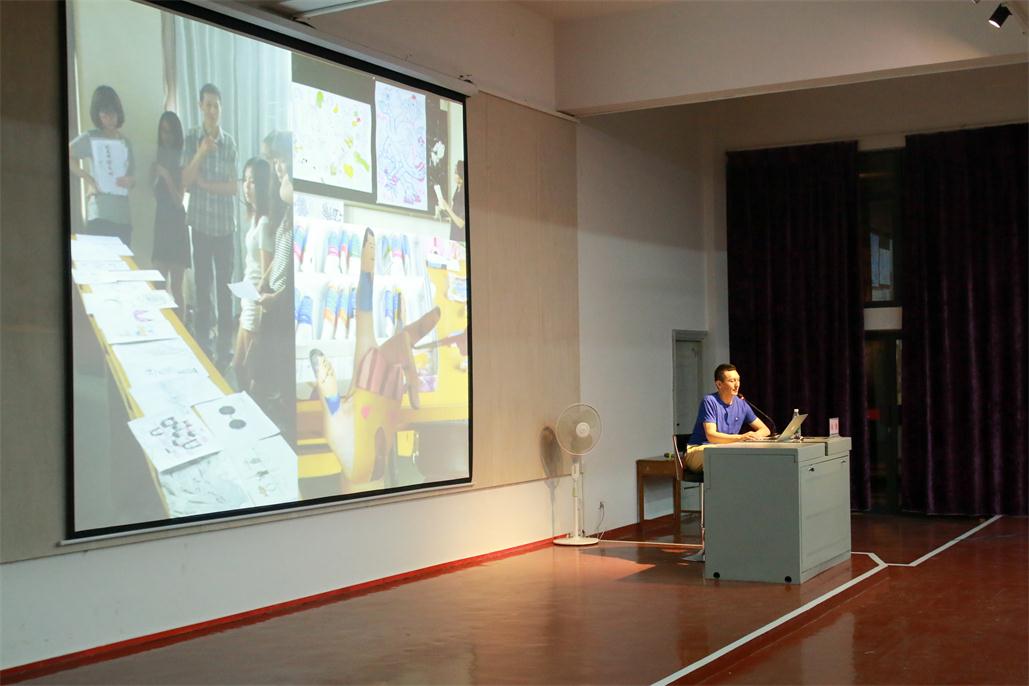 肖勇教授放映了大量的图片和视频资料,他向同学们简要介绍了“设计”和“视觉”的概念以及作用。他指出,随着现代信息社会的变化和不同行业的融合,设计早已不再局限于传统的传播模式,而是朝着空间化和多媒体化的方向发展,他勉励同学们多去开阔眼界,打开思维,不断提高自身的审美品位,使自己的设计不仅能打动人们的眼睛,更能走进人们的心里。