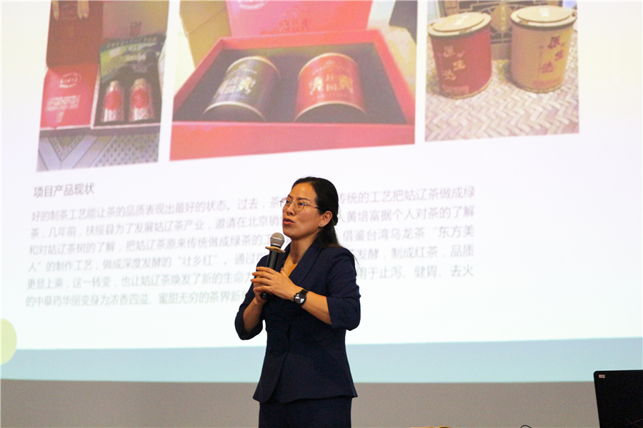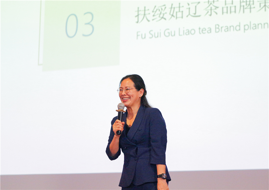 李教授在讲师上分享了千年姑辽茶的品牌策划和包装设计案例。由于姑辽茶的包装设计和宣传力度不够,一定程度上影响到了姑辽茶的销量。李教授及其团队对姑辽茶的千年古茶树和五百年古茶树分别设计了“一叶千古”和“早春玉露”两款包装,通过国家一级保护动物白头叶猴和广西少数民族人物元素,运用质朴的绘画手法、和谐的色彩搭配创作了包装插画,展现出鲜明的地方特色。如今很多项目产品面临着“走不出去”的现状,究其原因是缺少一个有创意的品牌。对此,李教授鼓励同学们认真学习设计,努力追赶时代潮流,创作出有广泛影响力的品牌。