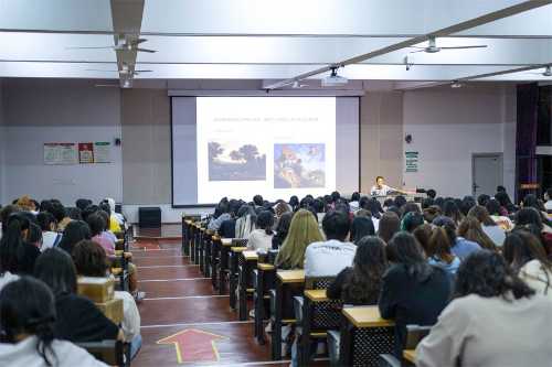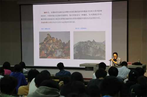 马振庆教授谈及有关色彩的文化内涵,他通过列举医院因颜色差异而造成人的心理差异、东西方对红色和黄色的不同态度两个鲜明的例子,让学生了解不同色彩的文化内涵,从而加深掌握颜色的文化寓意和象征。他还通过塞尚、高更、梵高的作品指出艺术设计是由复杂到简单的过程。在介绍中国风景画时,他建议同学们学习张钦若先生的意象画所表达的主观性特征和吴冠中先生对艺术的执着与探索的精神,在大量的艺术品鉴中养成自我艺术审美和品格。