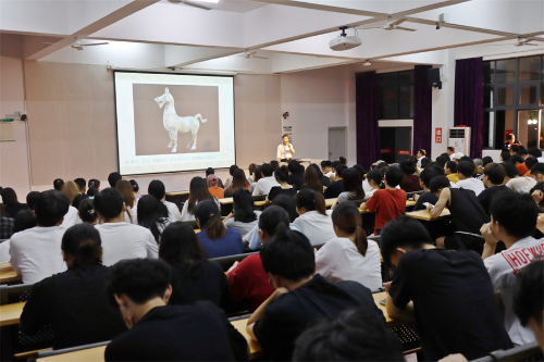讲座中,廉世明馆长从文物的概念和内涵出发,带领参与讲座的师生深入了解了文创产品是如何完成从设计到制作,最后进行售卖的全过程。