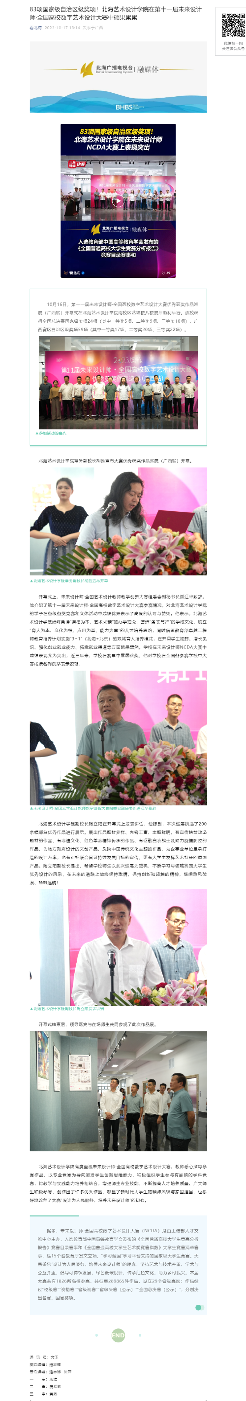 北海广播电视台:83项国家级自治区级奖项!北海艺术设计学院在第十一届未来设计师·全国高校数字艺术设计大赛中硕果累累