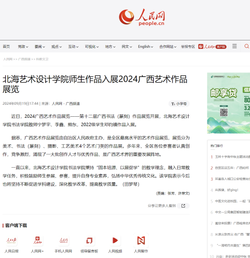 人民网:北海艺术设计学院师生作品入展2024广西艺术作品展览