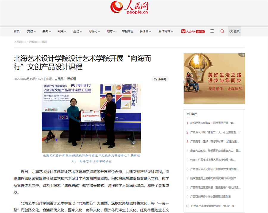 人民网:北海艺术设计学院设计艺术学院开展“向海而行”文创产品设计课程