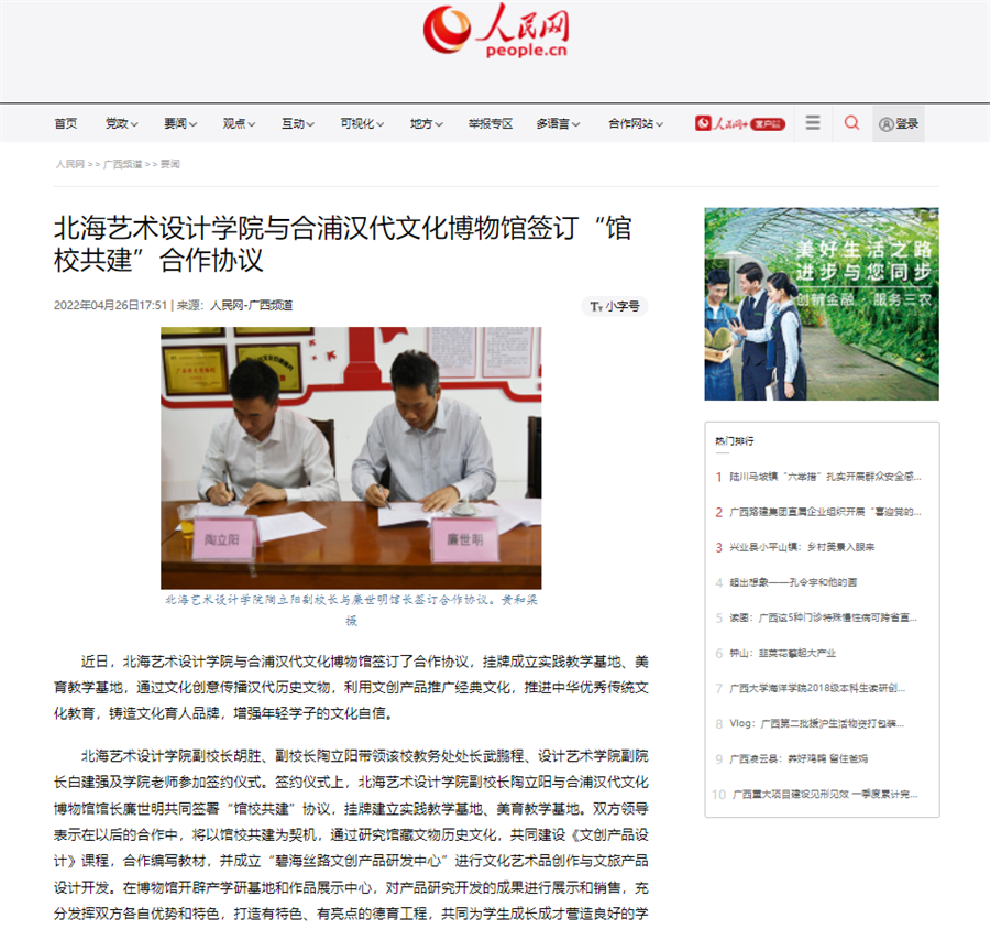 人民网:北海艺术设计学院与合浦汉代文化博物馆签订“馆校共建”合作协议
