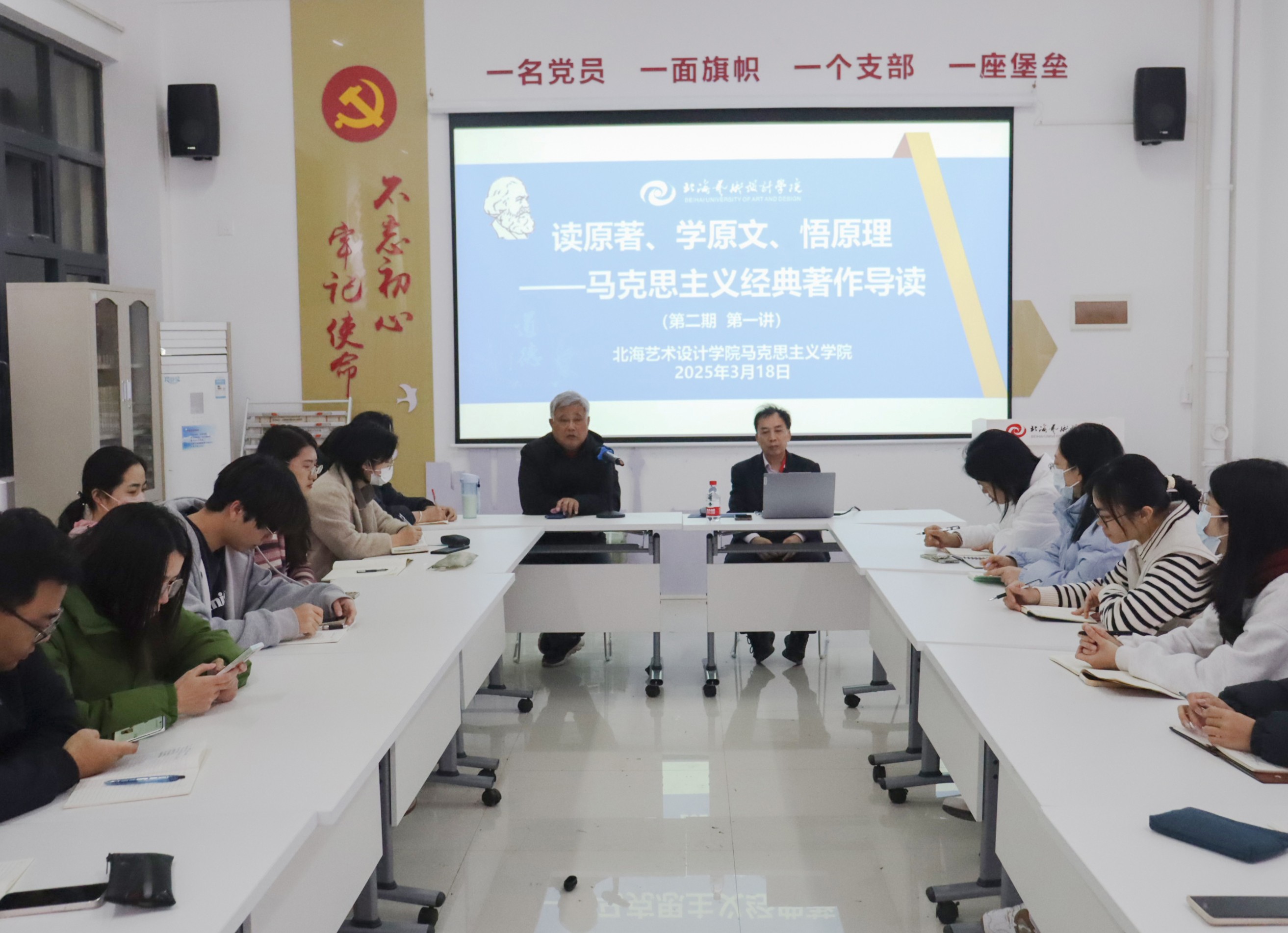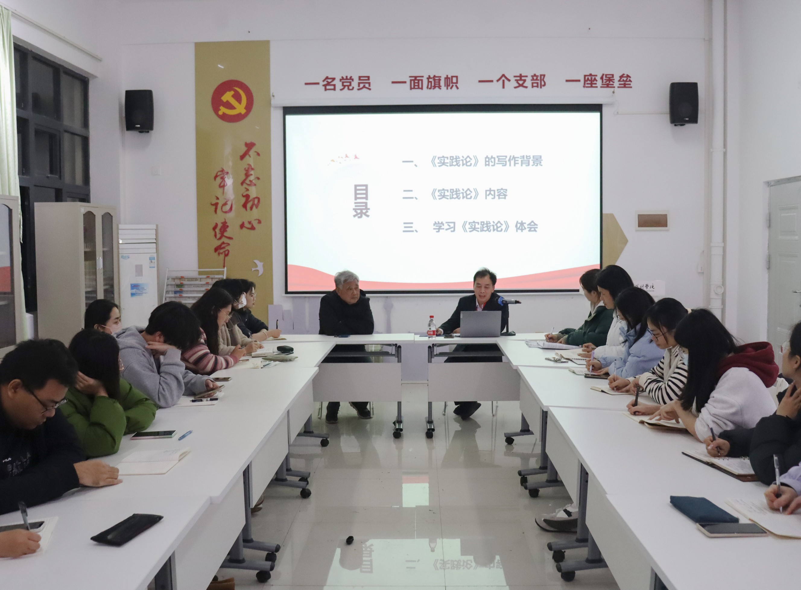 3月18日晚上19:30,马克思主义经典著作导读系列活动第二期首讲在西校区行政楼103重磅来袭,活动由我院院长姜献生主持,潘冬根教授主讲《实践论》,学院全体中青年教师参加。