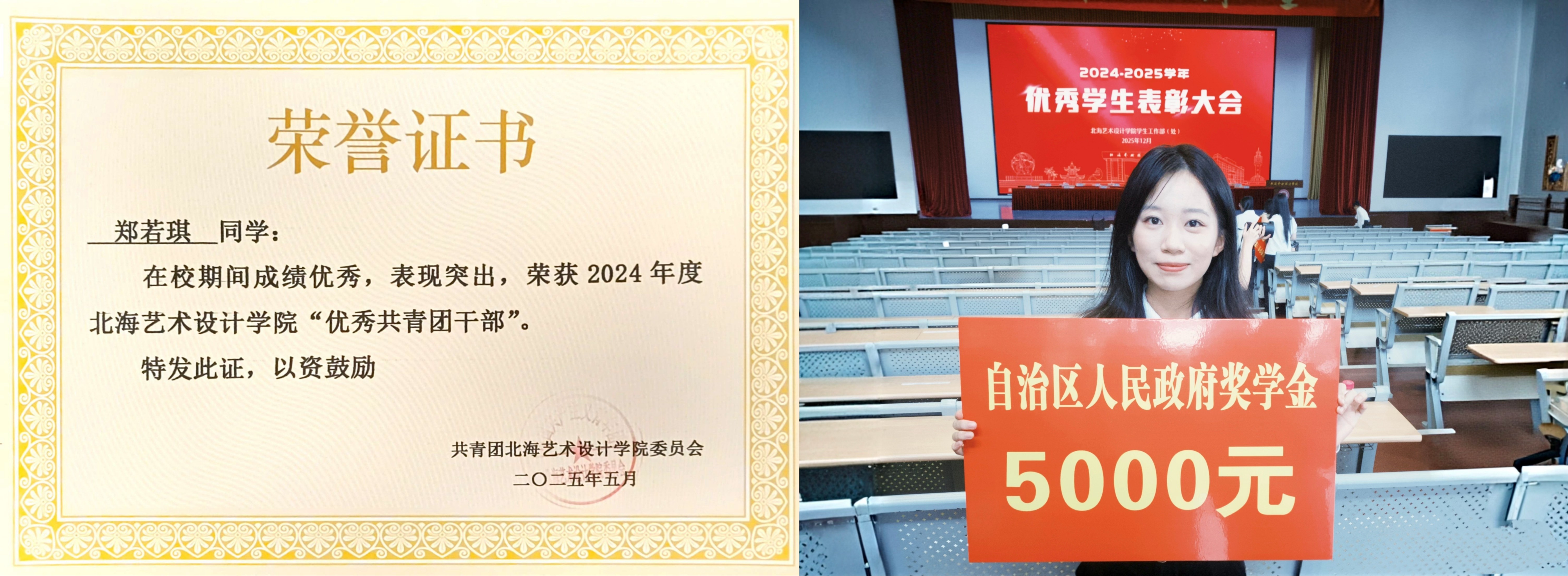 2025年12月,获北海艺术设计学院校级优秀学生干部荣誉称号;