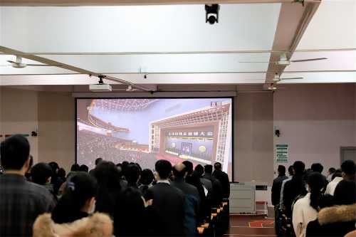 当天上午,伦理楼107现场庄严肃穆,10点整,江泽民同志追悼大会开始,全体人员向江泽民同志默哀3分钟,现场师生神情凝重、肃立默哀,深切悼念江泽民同志,寄托无限哀思,表达了对江泽民同志的崇高敬意和深切缅怀。默哀毕,全场高唱国歌后,认真聆听了习近平总书记所作的悼词,收听收看过程中,全体参会人员全程肃立,共同缅怀江泽民同志的光辉业绩、杰出理论贡献、优秀品格和高尚风范。