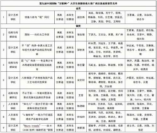 近日,广西壮族自治区教育厅发文公布了第九届中国国际“互联网+”大学生创新创业大赛“数广集团杯”广西赛区选拔赛获奖名单,我校斩获奖项共17项,其中,项目《惊喜八桂与“坭”同行》斩获自治区级金奖,其它晋级区赛的16个项目荣获自治区级铜奖。