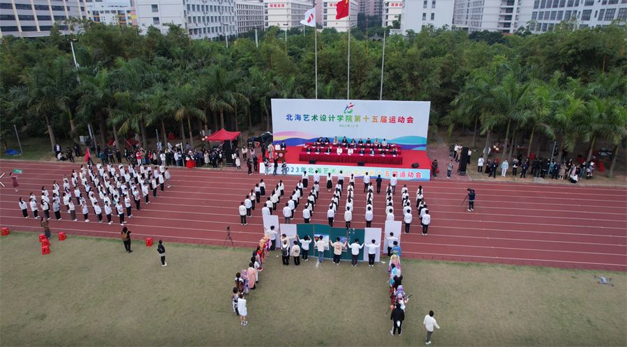 在学校党委书记范徽忠的高声宣布下,礼炮齐响、彩烟飞扬,直冲云霄,北海艺术设计学院第十五届运动会正式进入为期两天的比赛日程。