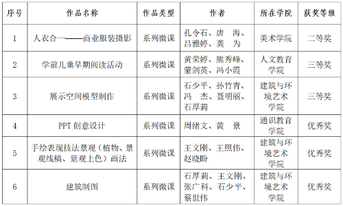 近日,自治区教育厅公布了第二十二届广西高校教育教学信息化大赛获奖名单(桂教教师〔2023〕73号),我校美术学院孔令石教师团队的作品《人衣合一——商业服装摄影》荣获系列微课组二等奖,人文教育学院黄荣婷教师团队作品《学前儿童早期阅读活动》、建筑与环境艺术学院石少平教师团队作品《展示空间模型制作》荣获系列微课组三等奖,《PPT创意设计》等三件作品荣获优秀奖。