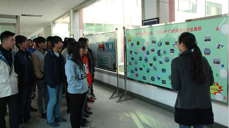 学生到达基地后,由园区的负责人员带领进行参观。园区的接待人员详细的介绍了园区的现状及各个公司的制作团队,项目制作由创作前期到后期制作的一系列实践过程。