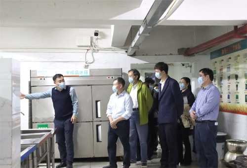 调研组查看学校食堂后厨设施