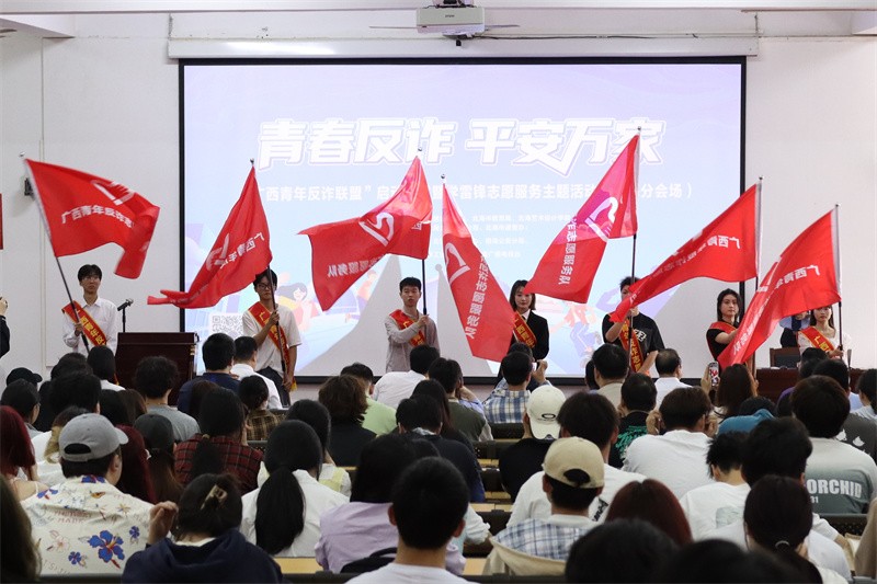 为推动构建全市“青年民警+团干部+青年志愿者”反电诈宣传新格局,引导全市青年在平安北海、法治北海建设中发挥生力军和先锋队作用,在奋力谱写中国式现代化北海篇章生动实践中贡献青春力量,3月24日,“广西青年反诈联盟”启动仪式暨学雷锋志愿服务主题活动(北海分会场)在我校举行。本活动由北海市公安局联合共青团北海市委、北海市教育局、国家金融监督管理总局北海监管分局、北海市通管办与我校共同举办,北海市副市长、市公安局党委书记、局长毛军出席活动并讲话。我校党委书记范范徽忠、副校长刘朝雄参加活动。